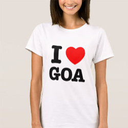 to Goa as groups. They love wearing the white color t-shirts with Goa written in bold letters, with a picture of a palm tree, elephant or a beach which screams how much the tourists love Goa. Available at any garment stores, there t-shirts come in different shapes and sizes to suit everyone.